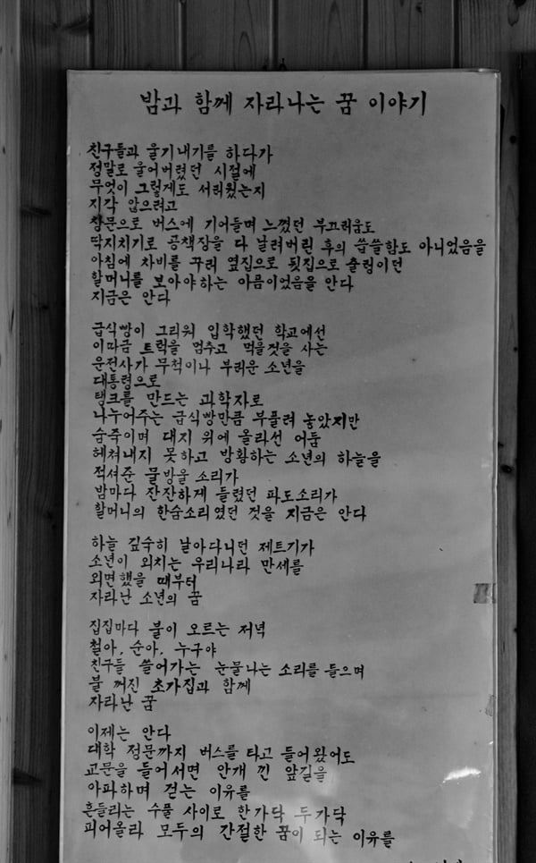 아래 그림의 시는 제주도에서 간첩으로 조작되어 1967년 구속되어 15년을 복역하고, 그 후 20년 가까이 보호관찰을 받았던 오경대 선생님의 아들이 직접 쓴 자작시입니다.