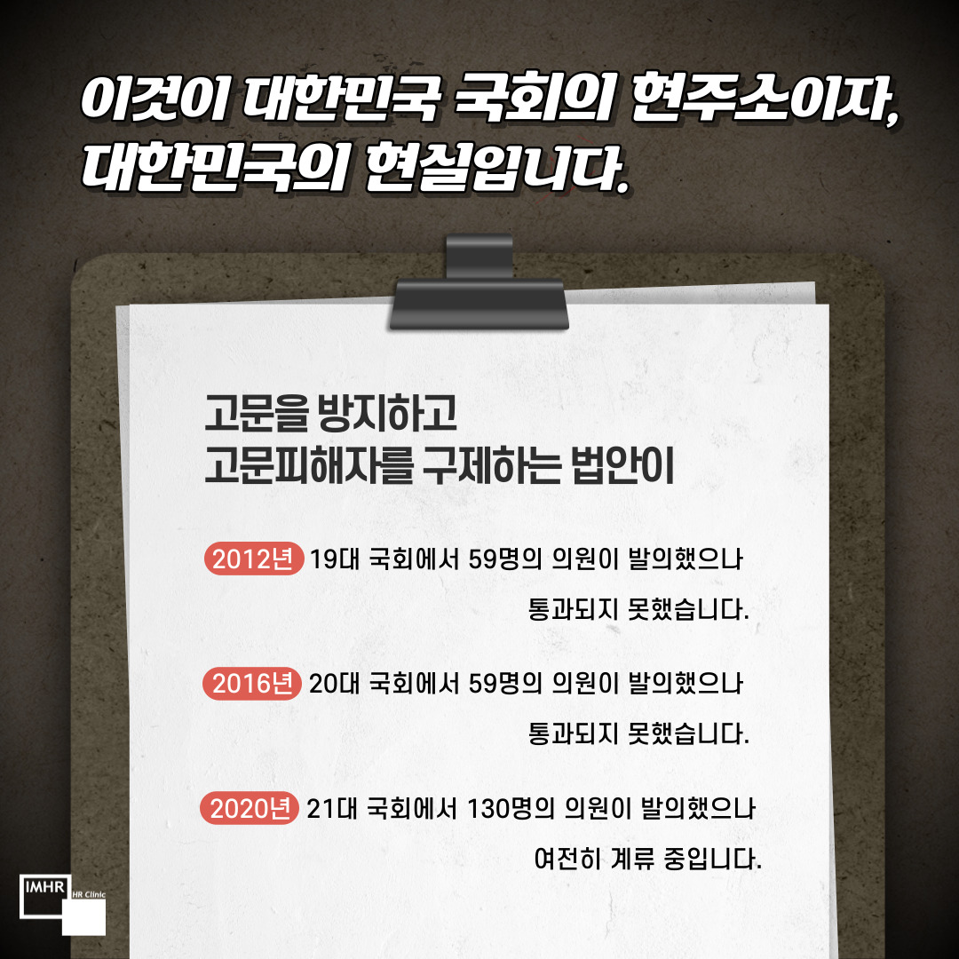 여전히 계류 중인 ‘고문방지 및 피해구제 법안’
