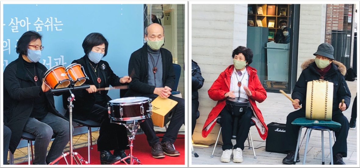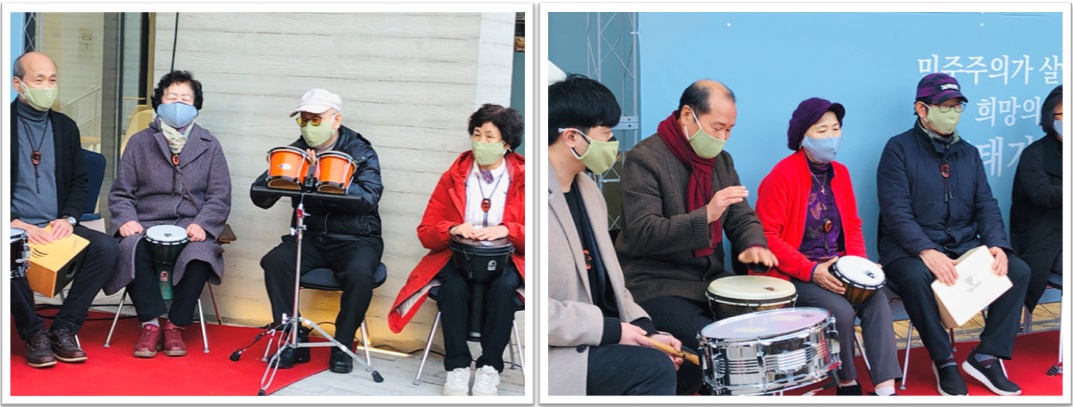 이런 맥락에서 이날 10명의 고문 피해 생존자들의 타악기 공연은 김근태기념도서관의 정체성과 맞닿아 있었다. 아래 글은 이날 공연을 하는 고문 피해 생존자들을 소개하는 글귀다.