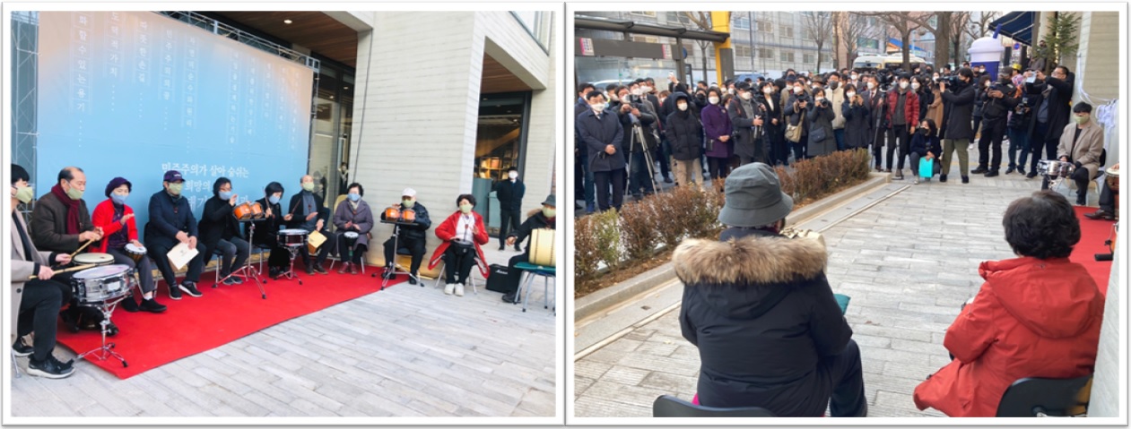 12월 4일(토), 고문 피해 생존자들이 도봉구에 위치한 김근태기념도서관 개관식에서 축하 공연을 가졌다. 이번 공연은 오후 2시부터 시작된 이날 개관식에서 마지막 현판 제막식과 함께 대미를 장식했다. 인재근 의원, 김부겸 행정안전부 장관, 이인영 통일부 장관 등을 비롯해 수많은 시민들이 참여한 개관식에서 고문 피해 생존자들은 김근태기념도서관의 정체성이 무엇인지를 몸소 보여주었다.