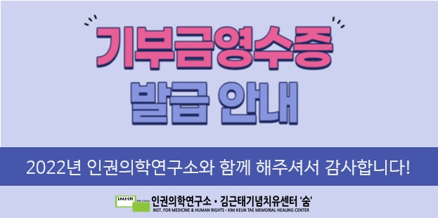 인권의학연구소ㆍ김근태기념치유센터‘숨’과 동행해주신 후원자분들께 2022년 연말정산을 위한 기부금 영수증 발급을 안내해드립니다.