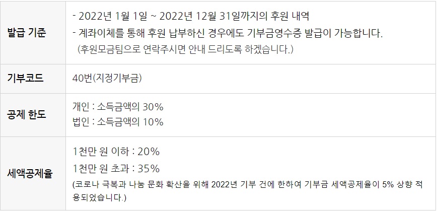 [공지] 2022년 기부금 영수증 발급 안내
