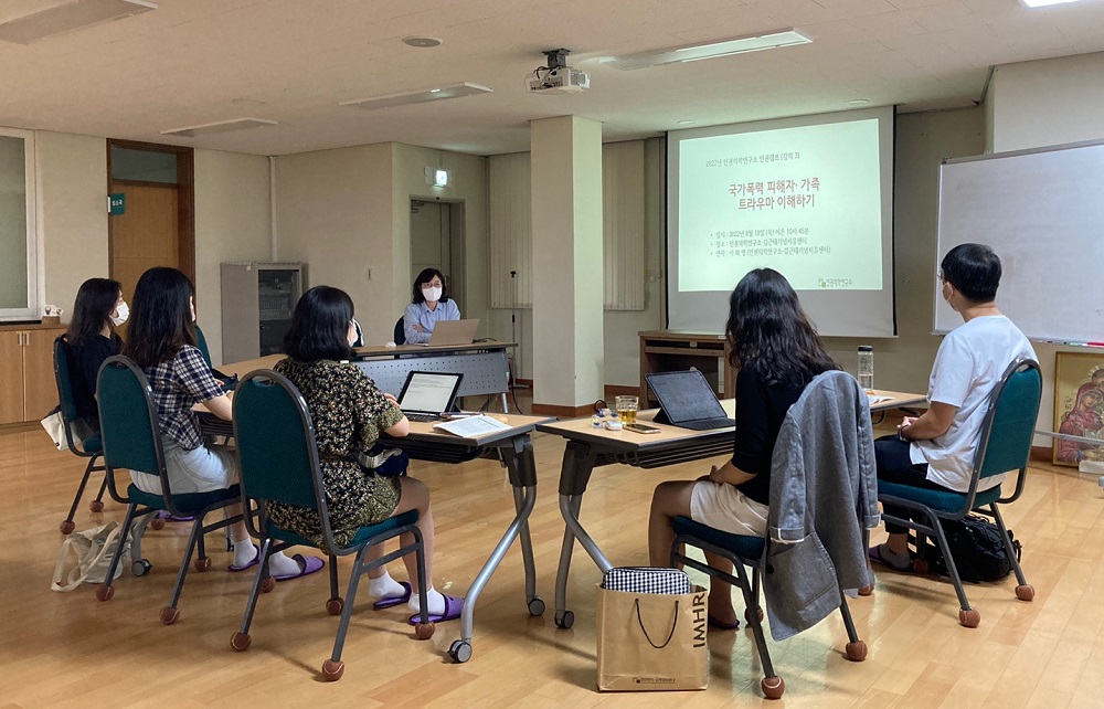 인권의학연구소 소강당에서 진행된 두 번째 강의는 인권의학연구소 이화영 소장의 ‘국가폭력 트라우마’였다. 오랫동안 한국 사회에서 배재되었던 국가폭력 피해자와 그 가족을 지원하고 있는 이화영 소장은 “과연 사람들은 질병만으로 아파할까?”라는 질문으로 강의를 시작했다. 이후 한국의 근현대사 속에 내재되어 있는 수많은 국가폭력의 역사를 재조명했다. 국가폭력은 국가 체제 하에 법과 질서의 이름으로 합리화되는 범죄이며, 이 범죄의 피해자는 개인이라는 점을 분명히 했다. 국가에 의한 피해자가 겪게 되는 트라우마는 일반적인 인간의 범주를 넘어선, 생명을 위협하는 사건이다. 특히, 인권의학연구소에서 지원하고 있는 고문피해자들이 일반적으로 경험하고 있는 외상 후 스트레스 장애(PTSD)의 증상을 소개하며 국가폭력의 실상의 설명하였다. 또한, 이화영 소장은 국제사회는 1984년 유엔고문방지협약과 1985년 권력남용피해자 인권선언 등을 제정하였고, 미국과 같은 특정 국가에서는 고문피해자를 구제 및 지원하는 법안이 제정되어 있는 반면 한국은 여전히 관련 법안이 국회에 계류 중인 점을 밝히며 우리 사회의 인권 감수성의 수준을 지적했다.