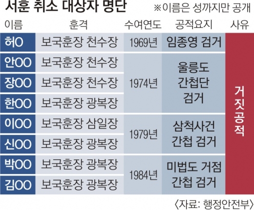 <사진 3>은 2018년 7월에 행정안전부가 발표한 서훈취소 고문수사관 명단이다. 자료를 잘 살펴보면, 피해자 이름이나 사건명을 확실히 명시하였으나, 반면 가해자 수사관의 이름을 허O, 안OO이라고 기입하여 발표하였다. 이는 피해자로 하여금 국가 사과의 진정성을 의심하게 만드는 대목이다. 게다가 울릉도간첩단사건의 훈포상취소자를 안OO, 장OO, 한OO 등 3명으로 발표하였으나, 모든 피해자들이 기억하고 지목하는 총책임 수사관이었던 차OO의 이름이 없다. 이것만 봐도 훈포상 취소와 국가의 사과가 지극히 표면적이고 형식적 겉치레라는 생각을 갖게 하기에 충분하다.