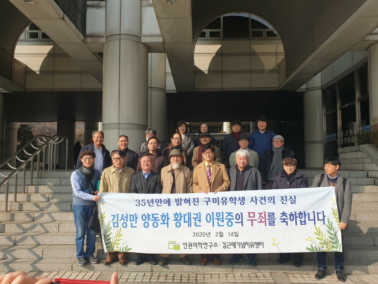 지난 7월 29일 목요일 10시 25분경, 대법원 2호 법정에서 4명의 대법관 중 한 사람이 무미건조하게 선고합니다. ‘상고를 기각합니다.’ 이 여덟 글자를 들은 두 분의 고문피해자는 안도의 한숨을 내쉬었다. 그리고 이 재판에 참여했던 고문피해자와 인권의학연구소 직원들은 조용히 법정을 나와 로비에서 서로 웃으며 축하의 말을 건넸다. 하지만 그 재판에 함께 참석했던 피해자 선생의 아내는 눈물을 흘리며 먼저 그 자리를 떠났다. 축하의 말을 건넬 틈도 없이 대법원 무죄라는 기쁜 소식을 듣자마자 황급히 그 자리를 떠나는 그분의 뒷모습을 보면서 그간의 서러움과 억울함, 어려움이 얼마나 컸을지 조심스럽게 예상하게 되었다. 그렇게 7월 29일 오전 10시 25분경, 구미유학생 간첩조작 사건의 피해자인 양동화, 김성만 선생은 대법원에서 무죄를 받았다.