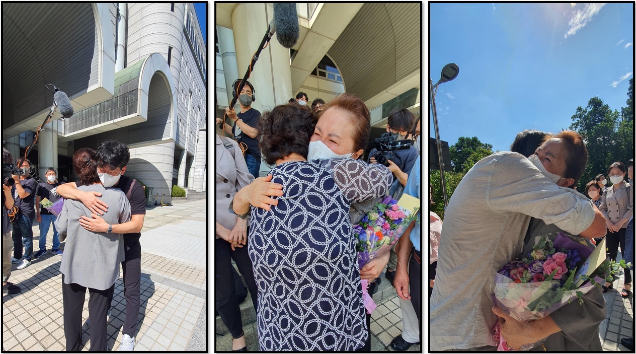 이 같은 소회를 마치고 정진아 부장판사는 이미 돌아가신 2분의 피고인과 재판에 참석한 3명의 피고인들 모두 무죄라고 판결했다. 3명의 피고인들은 무죄라는 말이 나오자마자 45년 동안 참았던 울음이 터져 나왔다. 그리고 피고인들과 같은 국가폭력 피해자로 가슴 졸이며 재판을 동행했던 참석자들도 방청석에서 너나할것 없이 눈시울을 붉혔다.