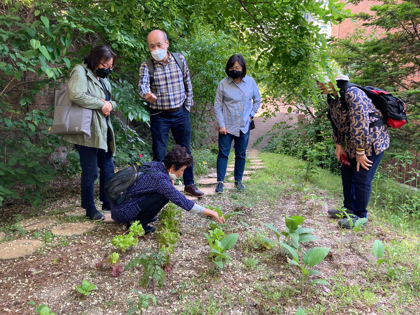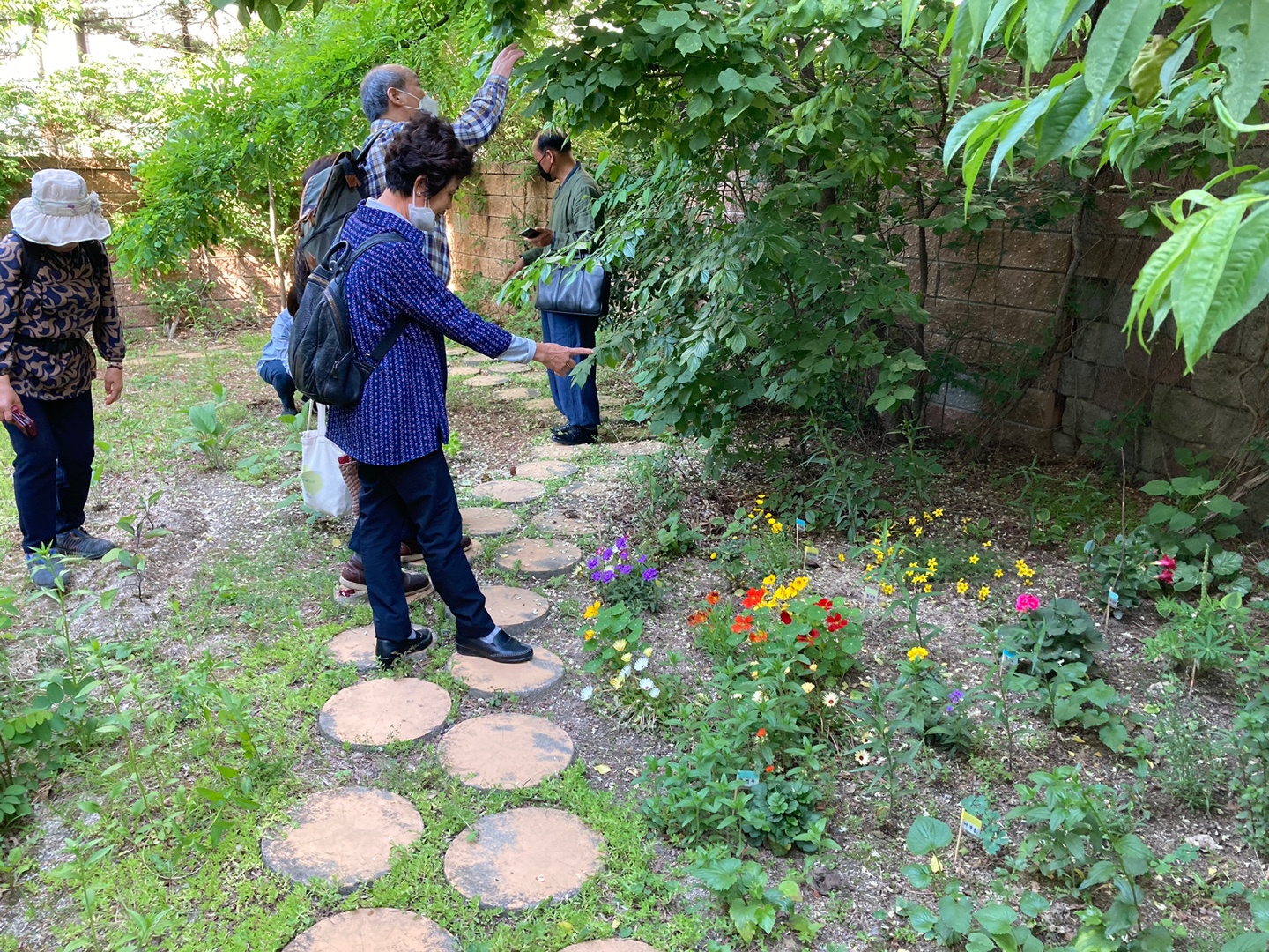 집단음악치유가 끝나고 가기 전 선생님들이 연구소 꽃밭에 들러