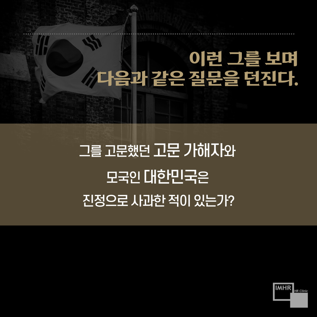 “이분을 고문했던 고문 가해자와 모국인 대한민국은 진정으로 사과한 적이 있는가?”