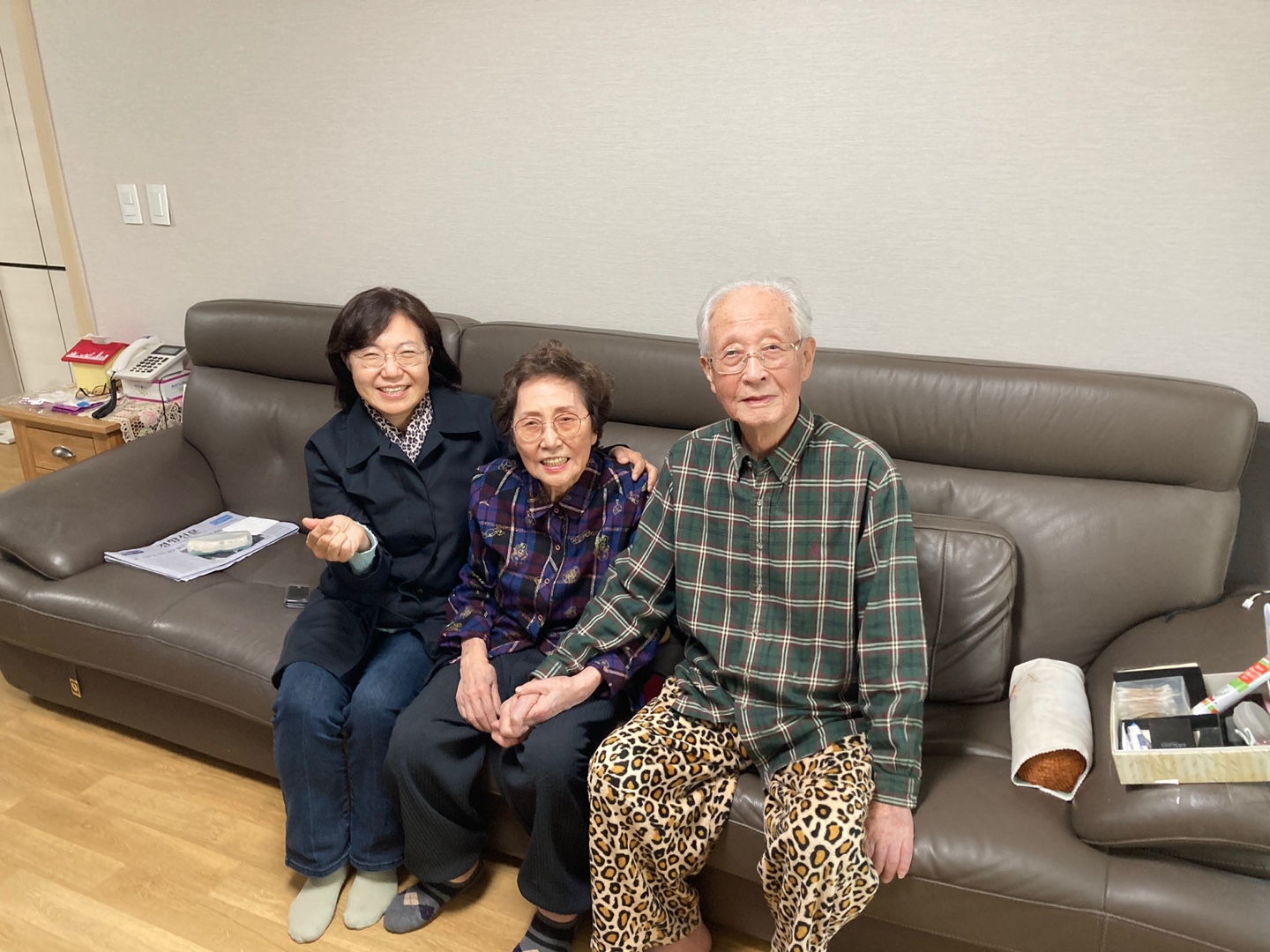 오후 2시에 만나기로 약속을 하고 아파트 현관에서 초인종을 누르려고 보니 현관문이 이미 열려 있었습니다. 점심을 드시고 벌써 두 선생님은 저희를 기다리고 있었습니다. 인사를 드리고 들어가자 저희를 너무 반갑게 맞아주셨습니다.