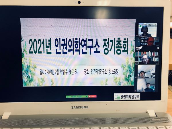 지난 2월 24일(수) 오후 6시에 인권의학연구소 1층 소강당에서 현장과 온라인 동시 회의로 개최되었다. 총회에 앞서 1주일 전인 2월 17일에 2021년 제1차 이사회를 소집하였고, 함세웅 이사장을 비롯해 이화영 상임이사, 백재중 이사, 손창호 이사, 신좌섭 이사, 박재영 이사, 이영문 이사, 최창남 이사가 온라인 회의로 참석하였다. 이사회에서 이사진은 2021년 총회 부의 안건인 2020년 사업과 재정보고, 감사보고, 2021년 사업계획(안)과 예산(안) 및 정관일부개정안과 감사선출안을 검토 의결하였다. 또한, 2021년 신규 정회원으로 추천된 김장호 회원을 승인하고, 2021년 운영위원회 구성안을 다음과 같이 승인하였다.