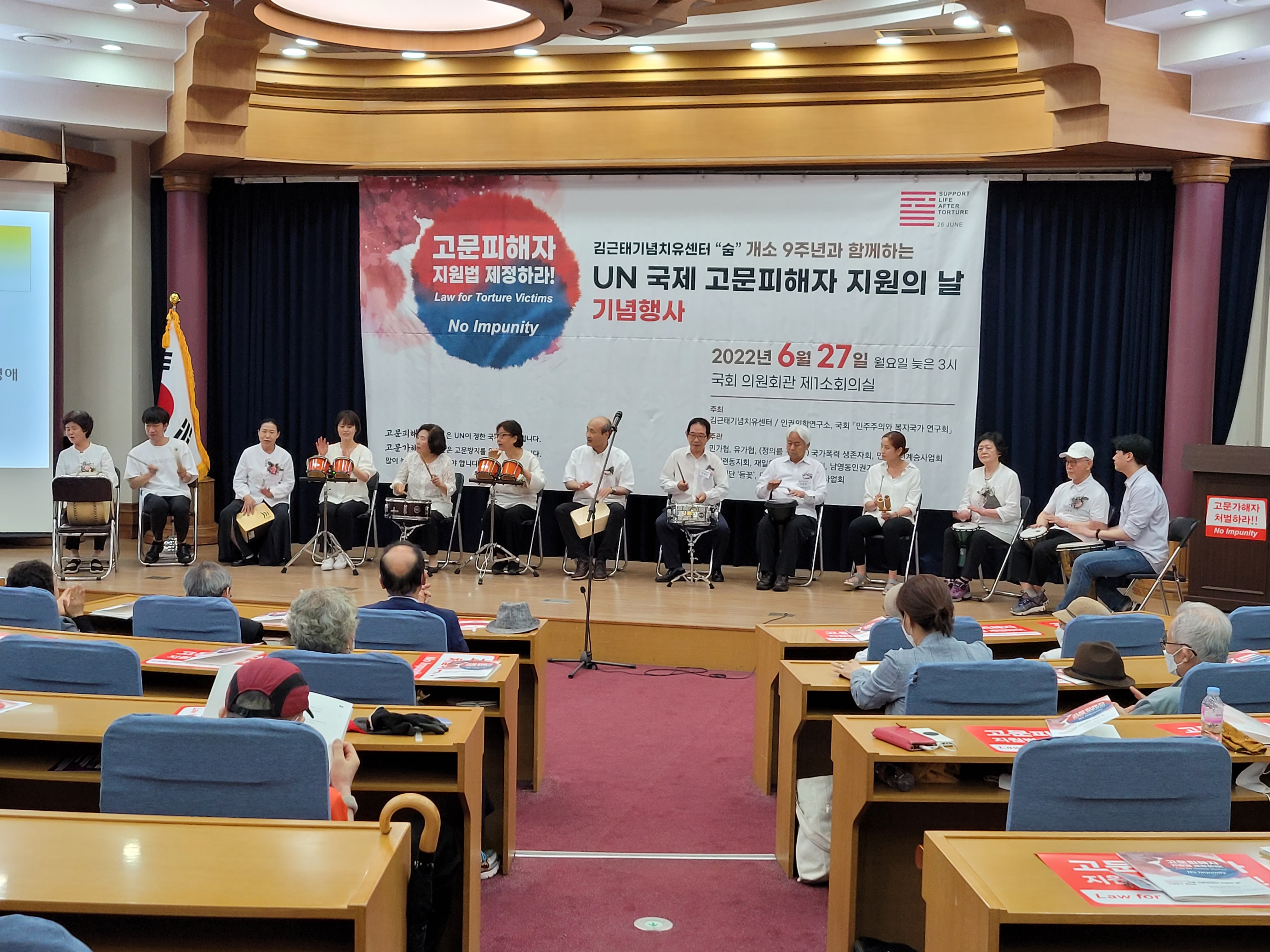 인권의학연구소가 ‘예술로사업’에 참여하는 이유는 예술은 법으로 해결할 수 없는, 제도로 해결할 수 없는 인간의 아픔과 갈등을 해결하는 힘이 있다고 생각하기 때문이다. 이러한 믿음 때문에 연구소는 지난 10여 년 동안 예술을 통한 치유활동을 해오고 있다. 구체적으로 2014년, 울릉도간첩단 사건의 40주년을 기념하여 서사치유연극 ‘상처꽃’을 약 2달 동안 대학로 극장에서 기획·상영했다. 또한, ‘예술로 들여다본 상처와 치유’라는 주제로 문화치유강좌를 개설해 일반인들에게 강의하기도 했다. 이 두 사례가 일반인들을 대상으로 한 예술활동이었다면, 고문피해자를 위한 예술치유 활동으로는 2015년부터 2019년까지 진행했던 ‘길음 판소리’가 대표적이다. 그리고 코로나로 인해 판소리 모임에 어려움이 생기자 2021년부터는 잼베, 카혼 등 타악기를 활용한 음악 치유 모임을 진행했다. 판소리와 마찬가지로 타악기를 활용해 이들이 트라우마에서 회복하는 데 집중했다.