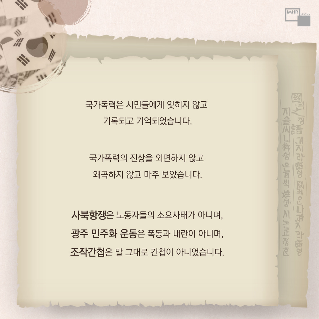 국가폭력은 시민들에게 잊히지 않고 기록되고 기억되었습니다.