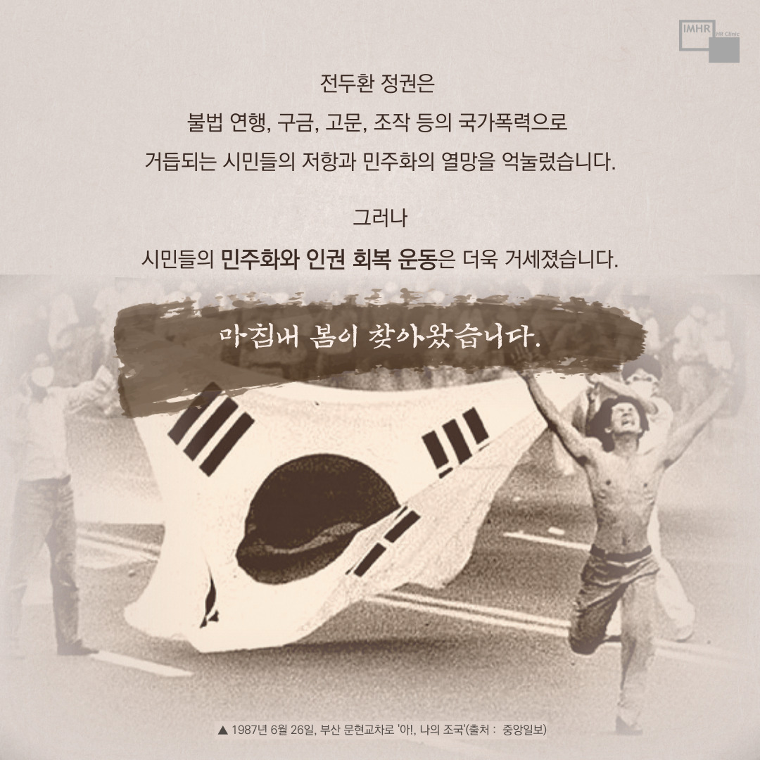 전두환 정권은 불법 연행, 구금, 고문, 조작 등 국가폭력으로