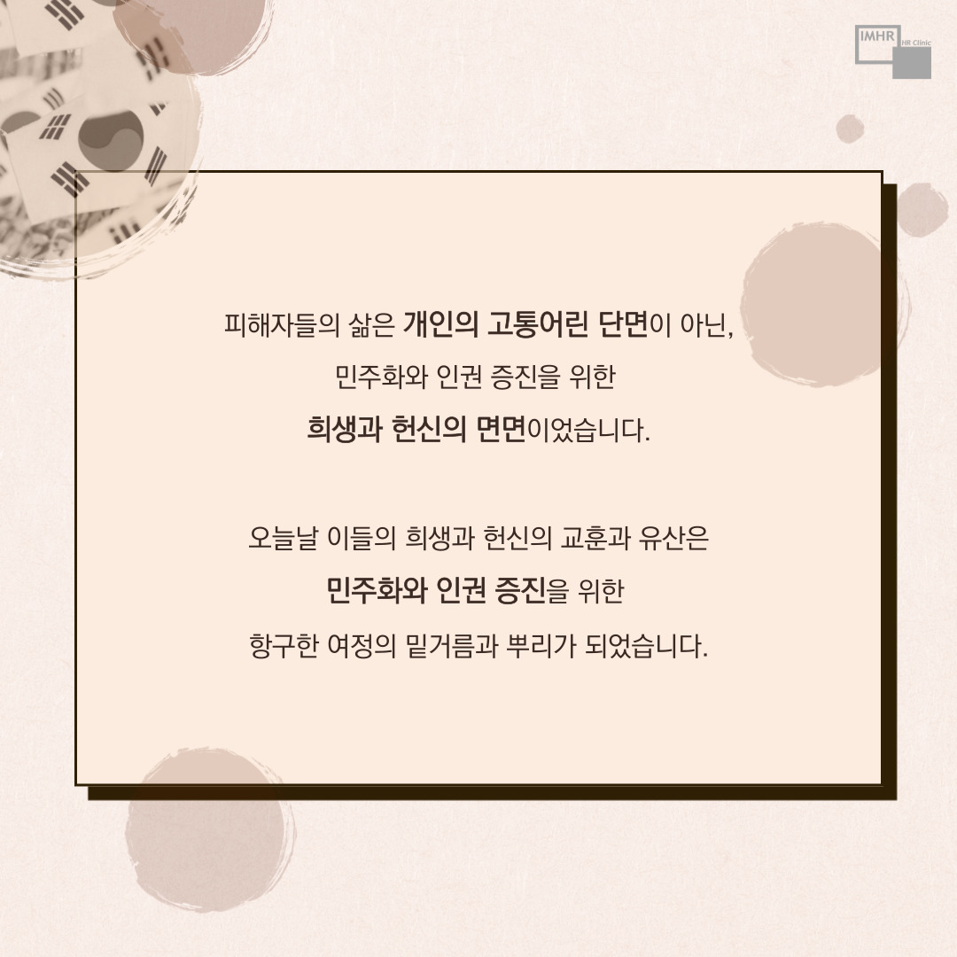 민주화와 인권 증진을 위한 희생과 헌신의 면면이었습니다.