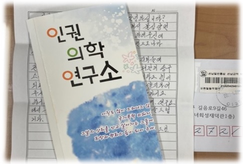 오늘(2월 7일), 인권의학연구소는 국가폭력 피해자 한분에게서 따뜻한 손편지를 받았습니다.