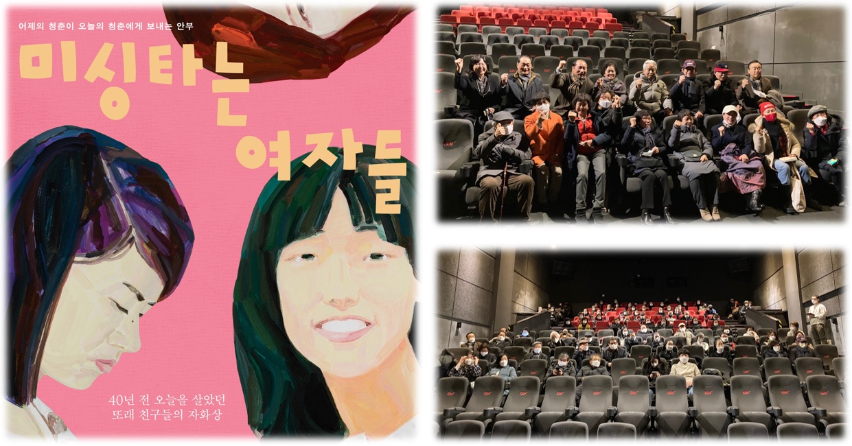 지난 토요일(22일) 오후 3시 30분, 인권의학연구소는 종로 3가에 위치한 CGV피카디리 극장에서 영화 『미싱타는 여자들』 공동 상영회를 가졌다. 이번 상영회는 코로나 방역지침으로 인해 최대 100명을 모집하였는데, 모집 3일 만에 신청 마감되었다. 인권의학연구소의 후원회원을 비롯해 많은 분들이 관심을 가진 이번 상영회는 영화 관람 후 감독 및 출연진과의 대화시간을 마련해 영화에 대한 다양한 이야기도 나누었다.