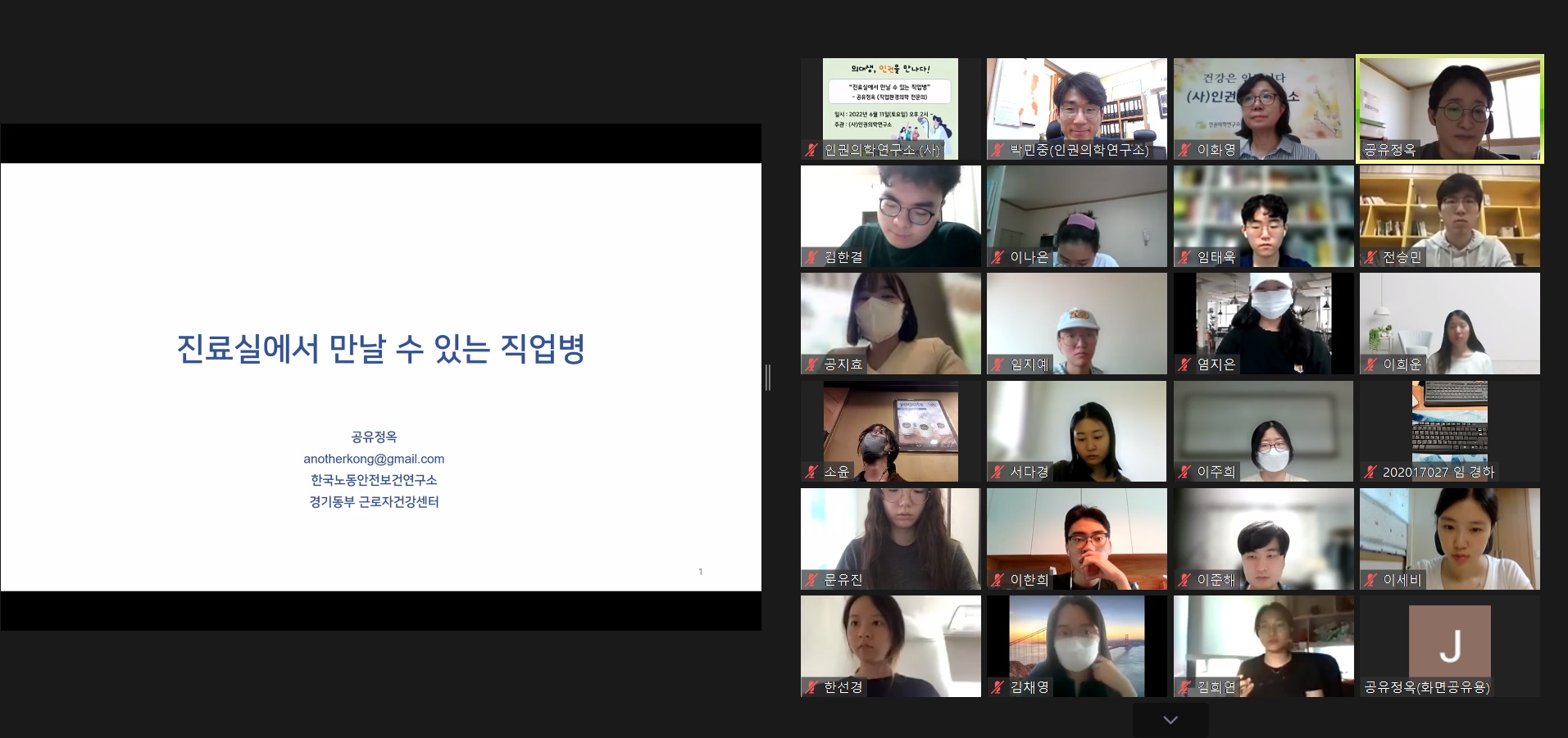 6월 공개강좌의 주제는 “진료실에서 만날 수 있는 직업병” (부제: 직업병의 비가시성과 의사의 역할)로 위험한 노동환경에서 노동자의 건강권 이슈를 다루었다. 공유정옥 전문의는 강의를 시작하면서 보건의료인은 환자의 건강 문제가 노동재해임을 규명하는 첫 문지기가 될 수 있다고 강조하였다. 실제 의료인이 노동재해를 인식하지 못하여 환자의 건강 문제를 제대로 진단하거나 치료하지 못하는 경우가 많음을 사례를 통해 설명하였다.