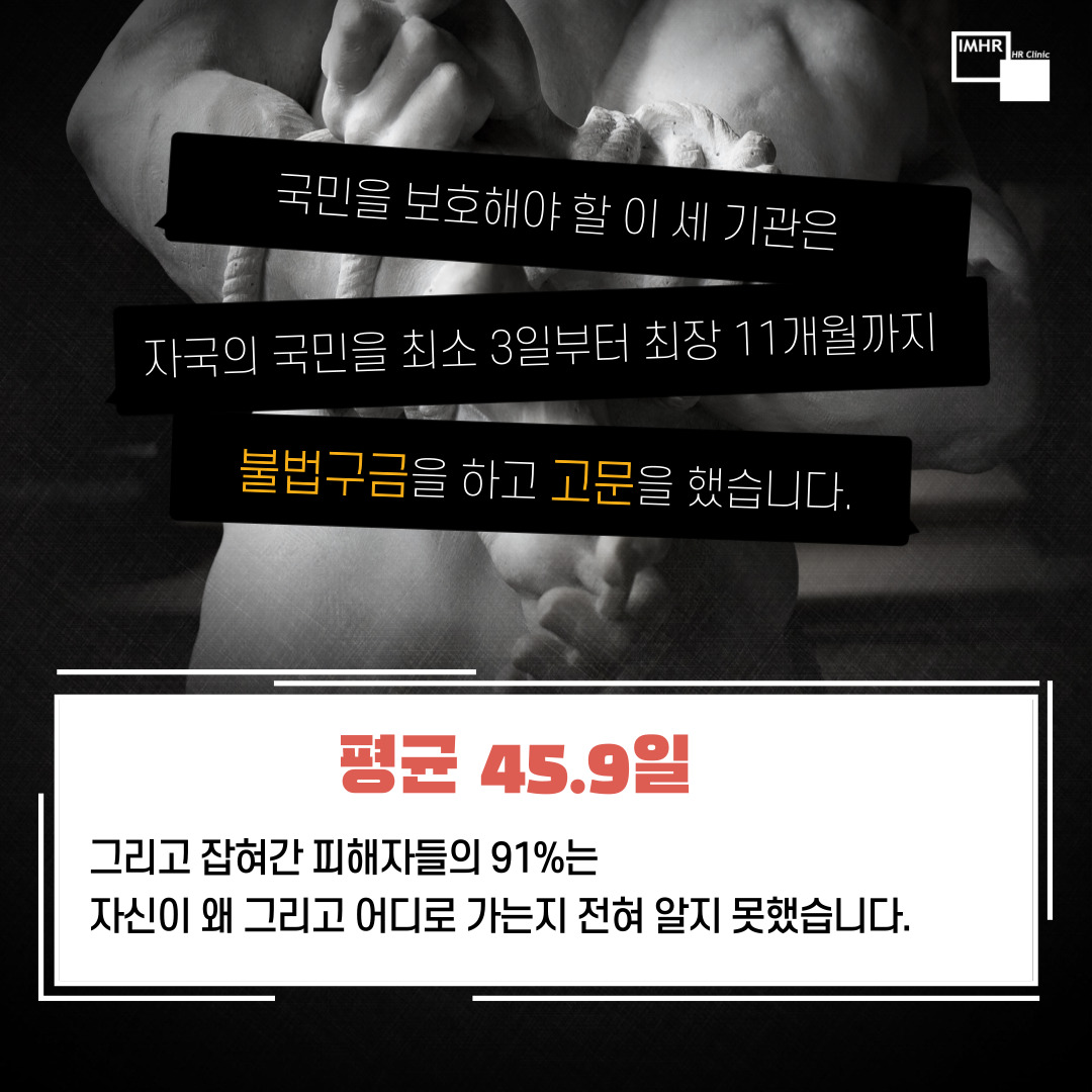 국민을 보호해야 할 이 세 기관은 자국의 국민을 최소 3일부터 최장 11개월까지
