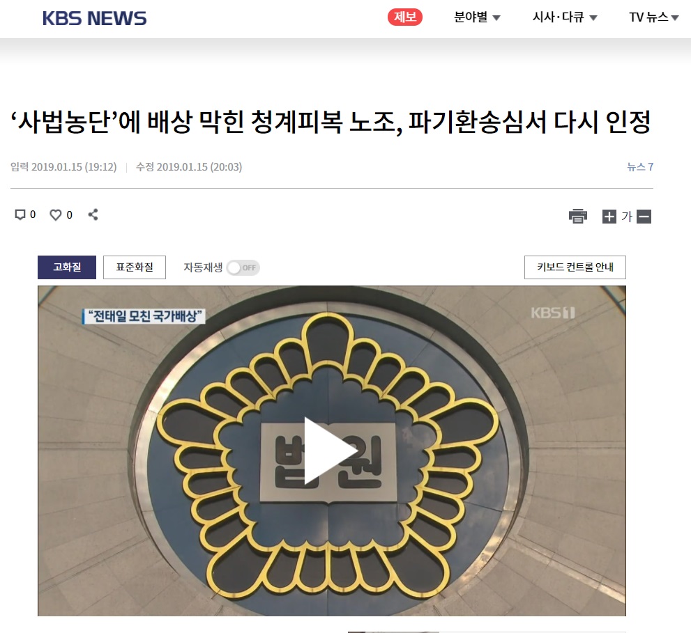 Q. 최근 청계피복 노조원들의 국가배상소송에 대한 대법원 판결이 있었죠? 재판 과정과 결과를 말씀해 주세요.