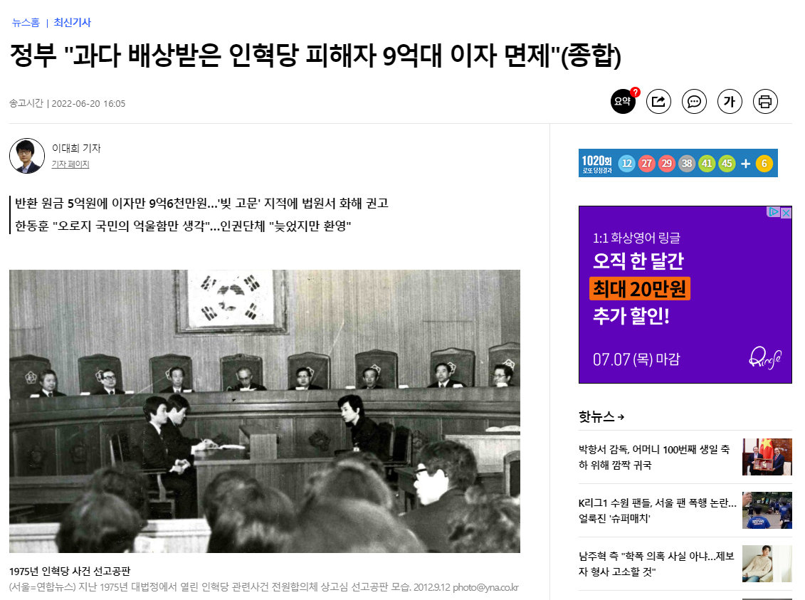 어제 법무부는 인혁당 사건의 피해자인 이창복 선생님에 대한 지연이자 납부를 면제하기로 밝혔습니다. 그동안 이창복 선생님과 그 가족이 이로 인해 받은 고통을 생각하면 정말 너무도 반가운 소식입니다.