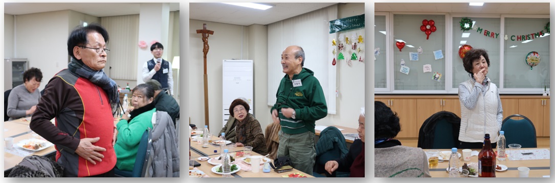 점심 식사를 하면서 회원들은 맨 앞에 마련된 포토존에 수시로 모여 크리스마스 장식이 된 머리띠와 안경 등 다양한 장신구를 착용하고 사진을 찍었다. 이전까지 이런 장신구를 착용해본 적이 없는 회원들은 처음에는 다소 낯설어했지만, 이내 서로 이것저것 추천하며 즐거운 웃음소리가 이어졌다.