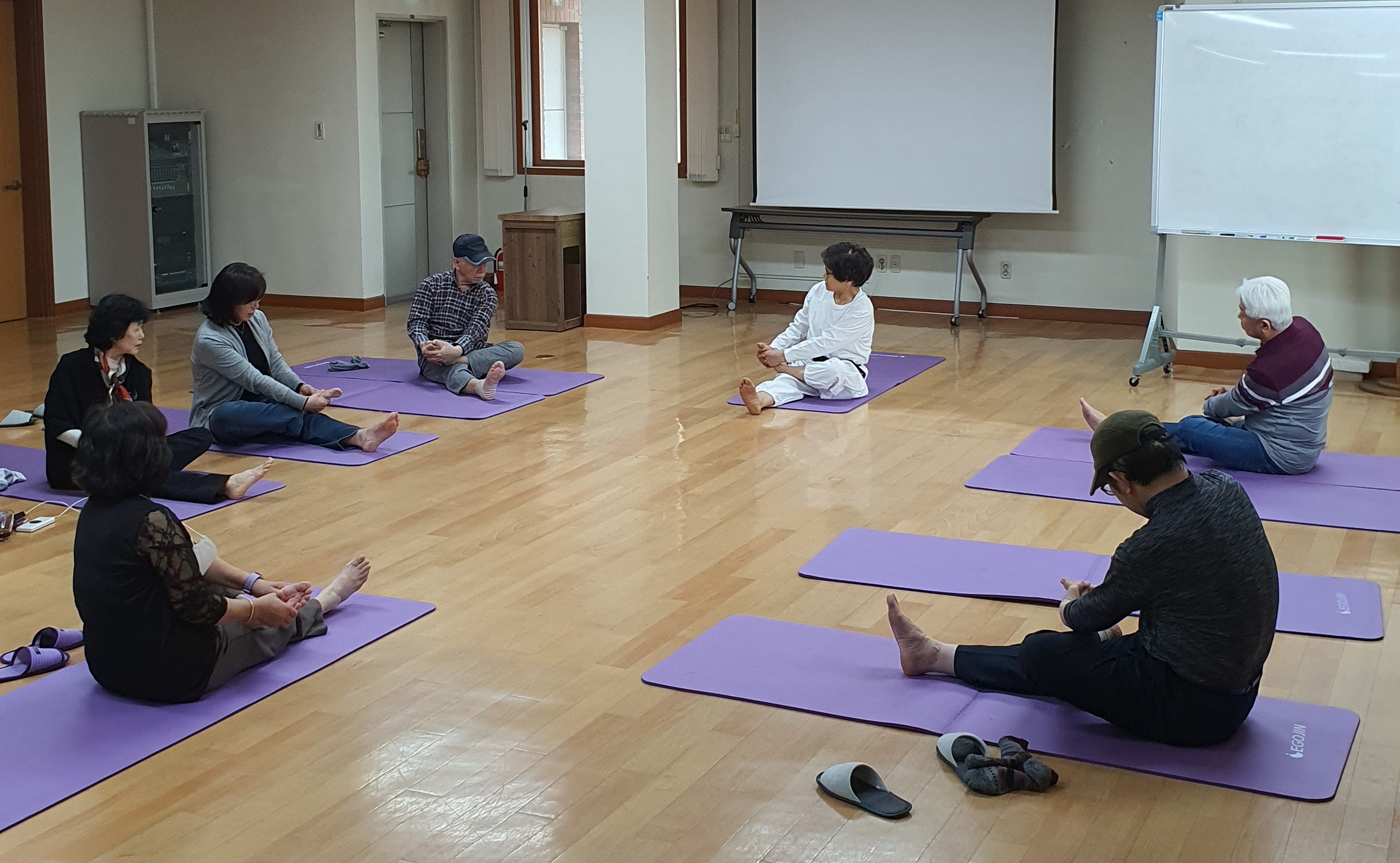 2023년도 1학기 ‘숨’ 교실은 건강ME, 일타 일어, 스마트시대 똑똑하게 살아가기, 나의 작은 자서전 이렇게 총 4개의 프로그램이 마련되었다. 건강ME와 일타 일어는 국가폭력 피해 당사자가 직접 강사로 참여하는 프로그램이다.(일본어 수업은 추후에 진행될 예정이다.) 먼저, 건강ME 프로그램은 청계피복 노동조합의 노동운동가였던 신순애 선생이 직접 강사로 나서 내 몸을 위한 혈기도를 진행한다. 고령의 국가폭력 피해자와 그 가족들을 대상으로 가벼운 스트레칭을 시작으로 몸의 순환을 이끌어내는 다양한 동작을 알려준다. 참여자들은 처음에 어색함과 어려움이 있었으나 시간이 지날수록 익숙해지며 건강한 신체를 위해 진지하게 참여하고 있다. 신순애 선생은 약 10년 동안 혈기도를 통해 자신의 몸 건강을 수련해 온 노하우를 가감 없이 공유하며 참여자들인 고문피해자의 건강을 돕고 있다.