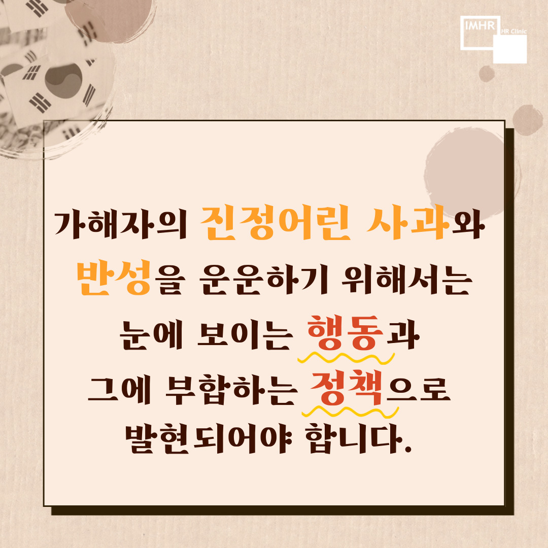 가해자의 진정어린 사과와 반성을 운운하기 위해서는 눈에 보이는 행동과 그에 부합하는 정책으로 발현되어야 합니다.