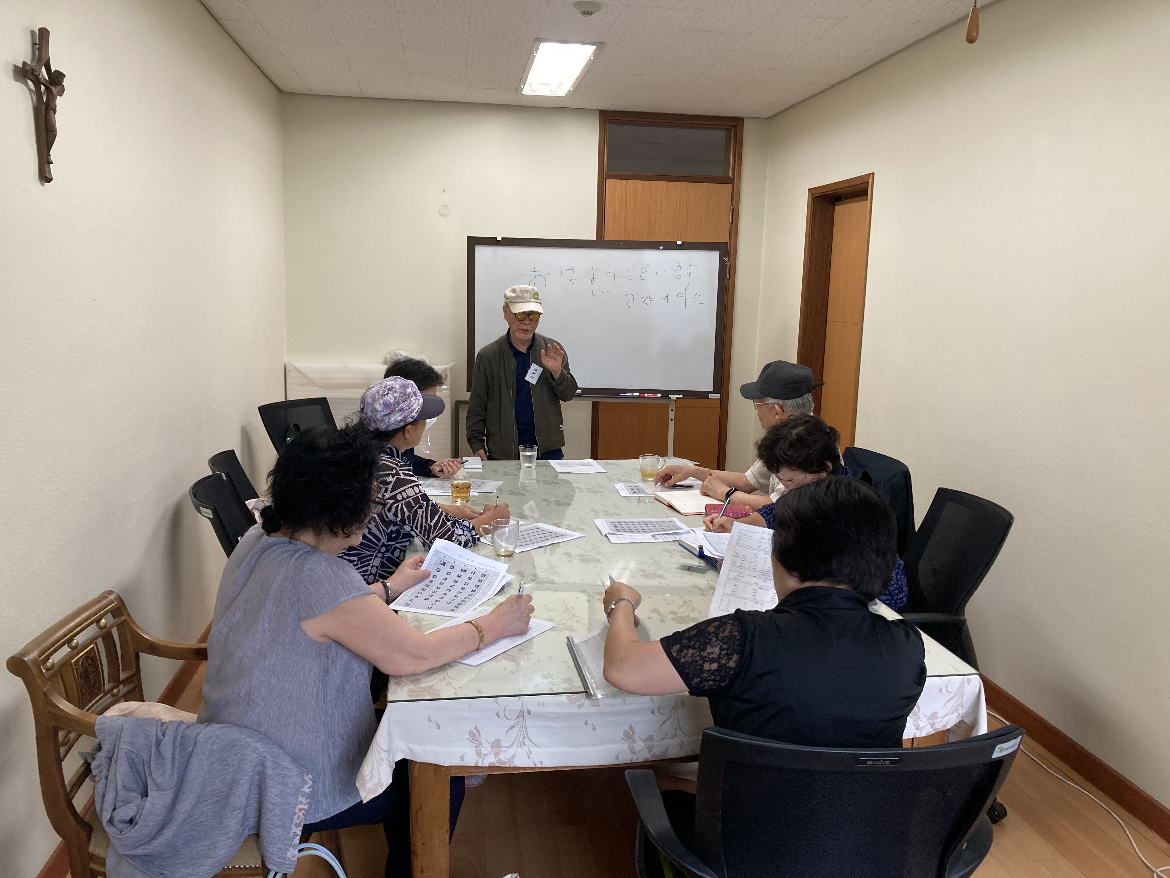 일본어 강사 선생님은 젊은 시절 일본에서 오랫동안 일하시면서 혼자서 일본어를 마스터하신 김장호 선생님입니다. 그리고 김장호 선생님은 한국에서 일본어 학원을 운영하신 경험도 있으셔서 우리 수강생들(국가폭력 피해 생존자)을 위한 교안도 직접 다 만들어 오십니다. 일주일에 한 번씩 진행되는 이 수업에 열정적으로 해주시고 있습니다.