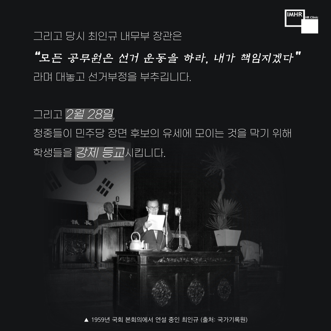 이승만의 불의에서 촉발된 시민들의 4·19 혁명.
