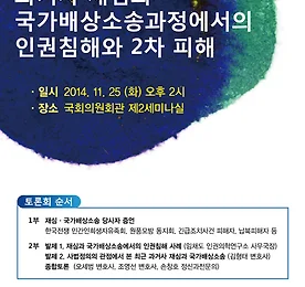 [국회토론회] '과거사 재심과 국가배상소송과정에서의 인권침해와 2차 피해'에 초대합니다. [국회토론회] '과거사 재심과 국가배상소송과정에서의 인권침해와 2차 피해'에 초대합니다 최근 진실화해위원회 등 여러 국가조사기구들에 의해 진실규명된 과거 국가폭력 사건들에 대한 재심, 국가배상소송이 진행 중에 있습니다. 그러나 이명박-박근혜 정부 들어 과거 국가폭력 사건에 대한 국가책임을 희석하고 면탈하려는 조직적 흐름이 강화되고 있고, 이로 인한 국가폭력 피해자들의 2차적인 피해와 외상을 우려하는 목소리가 커지고 있습니다. 이에 인권의학연구소·김근태기념치유센터 '숨'은 국회 ‘민주주의와 복지국가 연구회’, 민주사회를위한변호사모임, 민주화실천가족운동협의회와 함께 최근 과거사 재심과 국가배상 소송에서 나타나는 문제점과 인권침해 사실을 피해자 증언으로 직접 청취하고, 재심과 국가배상소송 과정의 법리적 문제점.. 더보기